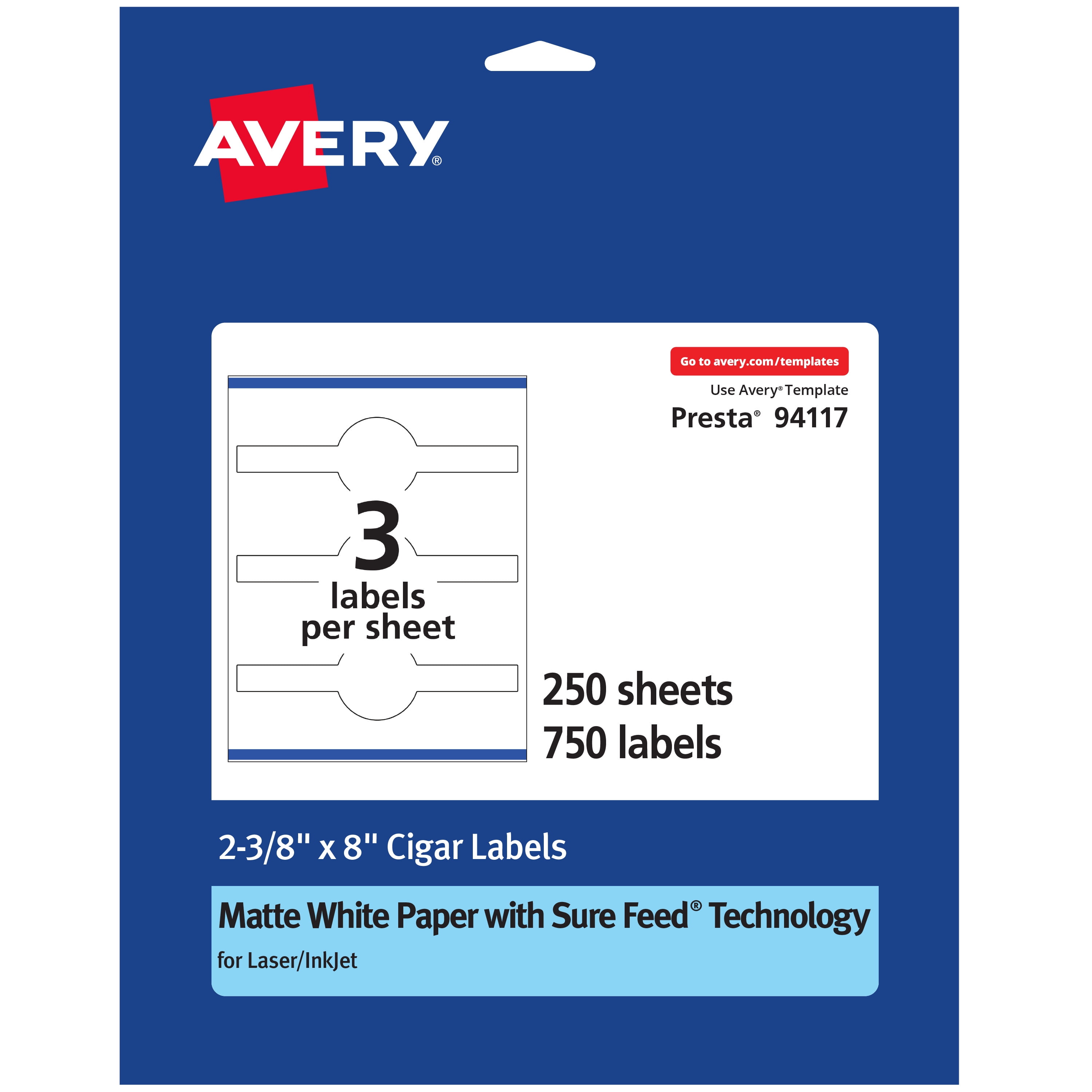 Avery Matte White Cigar Labels With Sure Feed 2 3 8 X 8 750 White Labels Permanent Label Adhesive Laser Inkjet Printable Labels Walmart Com